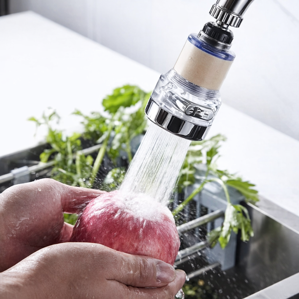 AquaTap 360™ skutecznie wyłapuje osad, rdzę i drobne zanieczyszczenia, które z czasem gromadzą się w filtrze – zamiast trafiać do szklanki, czajnika czy na warzywa.